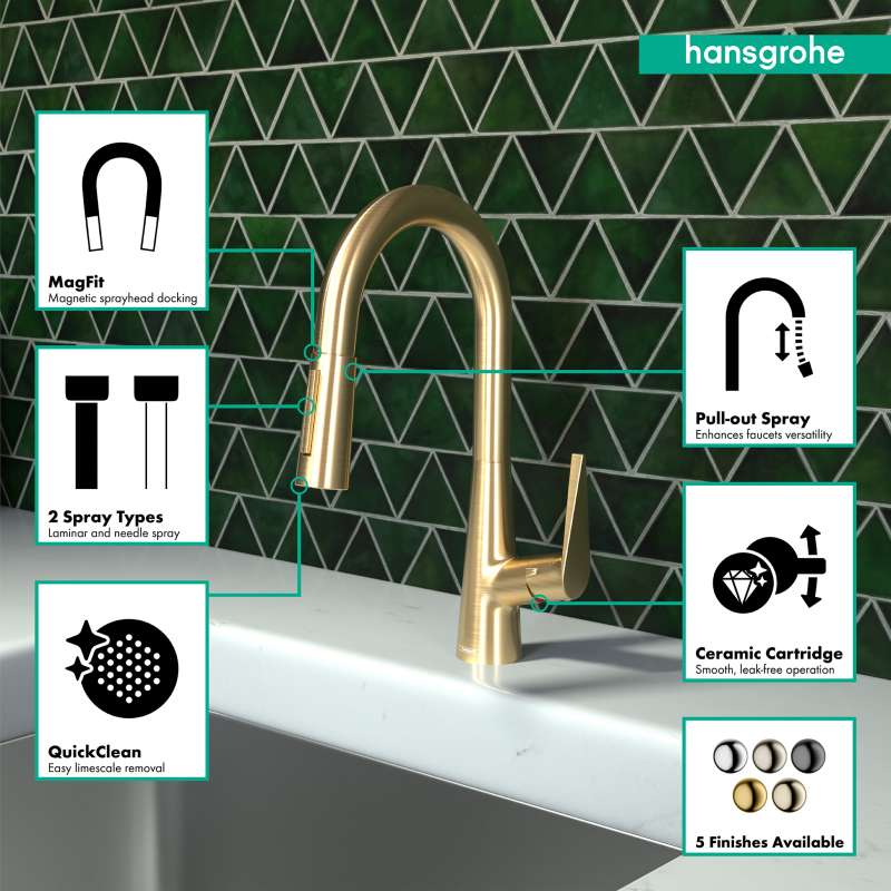 • Hansgrohe Talis S Prep Kitchen Faucet, 2-Spray Pull-Down, 1.75 Gpm In Brushed Gold Optic, 72815251 Brushed Gold Optic