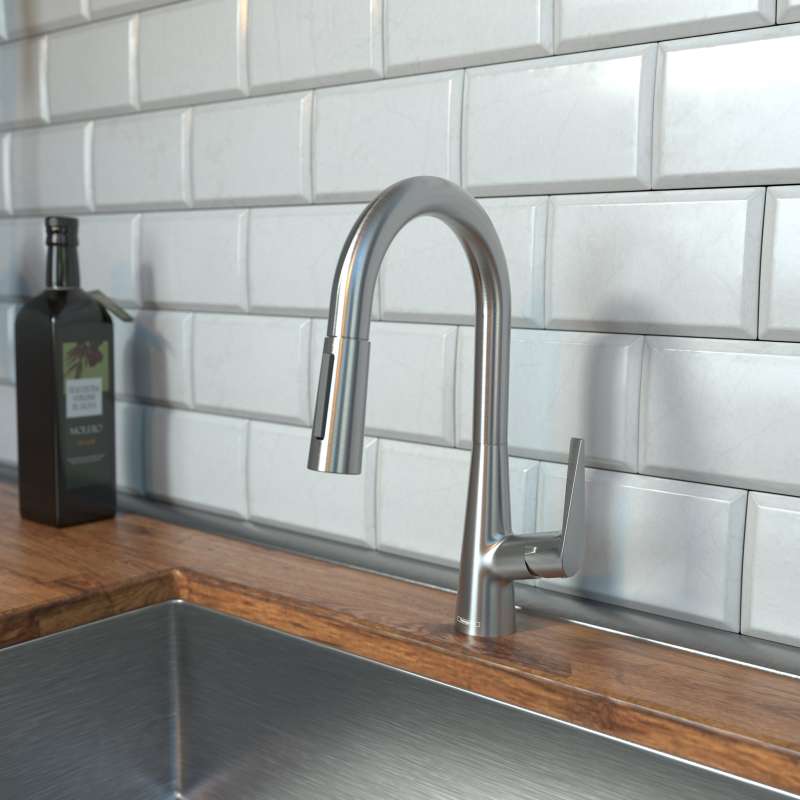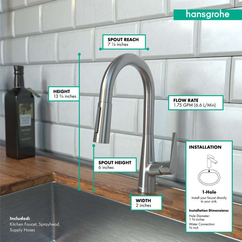 Are you looking for an excellent kitchen helper that combines modern design and many functional details at the sink? The hansgrohe Talis S kitchen faucet range blends in perfectly with any kitchen and is available in different versions - from the basic model right up to faucets with high swivel spouts and hand sprays. Talis faucets are high-quality in form and function. Their conical basic shape gives them an elegant look. And the large areas with their precise transitions are Easy to clean. And if you simply rub the QuickClean silicone inserts on the faucet spout with your finger, limescale has no chance. Your kitchen faucet will be gleaming as good as new in no time. The MagFit magnetic holder fixes the hand spray securely in place on the middle of the spout after use.