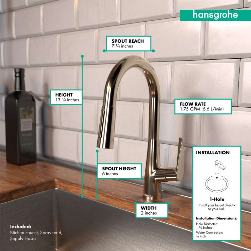 Hansgrohe Talis S Prep Kitchen Faucet, 2-Spray Pull-Down, 1.75 Gpm In Polished Nickel, 72815831 Polished Nickel