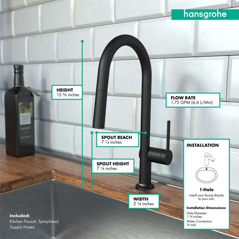 Hansgrohe Talis N Higharc Kitchen Faucet, A-Style 2-Spray Pull-Down, 1.75 Gpm In Matte Black, 72846671 Matte Black