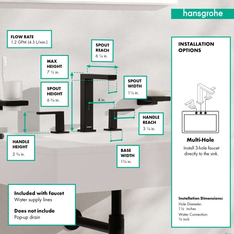 • Hansgrohe Tecturis E Widespread Faucet 150, 1.2 Gpm In Matte Black, 73031671 Matte Black