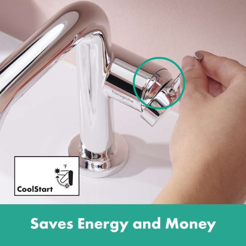 The Tecturis S 240 Fine single lever faucet turns water into an experience. Give water a striking shape with the compact Tecturis S 240 Fine CoolStart bathroom faucet from hansgrohe. Tecturis S impresses with a purist design that has clear lines and rounded shapes. At the same time, the bathroom faucet combines an attractive appearance with maximum comfort. This turns the use of water into a new aesthetic experience every day. Convenient: the lever placement reduces water drops and limescale on the faucet. The water is enriched with air, giving fewer water splashes and an incomparably pleasant feeling on the skin.