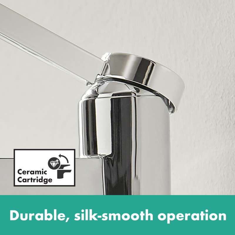 Modern single-hole faucet in brushed nickel for a puristic bathroom ambience - includes push-open drain The Finoris 260 single-hole bathroom faucet in brushed nickel with push-open drain assembly from hansgrohe interprets the classic operating concept surprisingly new and modern via a slim single handle. The slim, geometric shapes fit particularly well into a puristic bathroom ambience. There, the faucet sets an expressive accent with its easy-to-clean surface in brushed nickel. The high quality faucet keeps what the elegant design promises. The single handle controls a high-quality ceramic valve from hansgrohe. The amount and temperature of the water are reliably adjusted. The quiet and crystal clear laminar spray continues the slim fitting body and forms a harmonious unit. Thanks to hansgrohe EcoRight technology, the faucet helps save water. It uses a maximum of 1.2 GPM - even at high water pressure. The sink is the heart of the bathroom. Here, the high spout simplifies with approx. 10 in. distance from the aink for many everyday tasks (ComfortZone 260). Whether it is filling large vessels or washing hair quickly under the faucet, the Finoris single-hole bathroom faucet 260 supports confidently. Push-open drain included. The included push-open drain fitting is operated without a pull rod. A short finger pressure on the drain plug opens or closes the valve. Without the pull rod on the back, the faucet looks even more puristic.