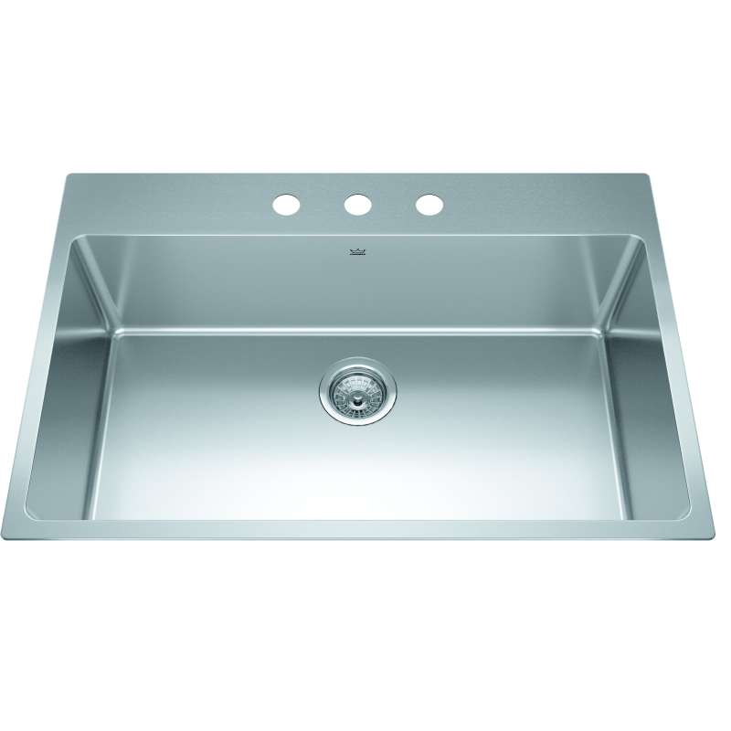 • Brookmore 32.9-In Lr X 22.1-In Fb X 9-In Dp Drop In Single Bowl Stainless Steel Sink, Bsl2233-9-3N Commercial Satin Finish