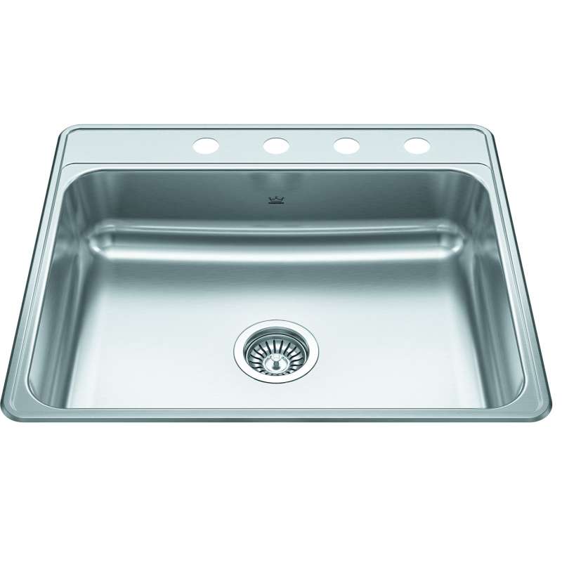 • Creemore 25-In Lr X 22-In Fb X 7-In Dp Drop In Single Bowl 4-Hole Stainless Steel Kitchen Sink, Csla2522-7-4N Commercial Satin Finish