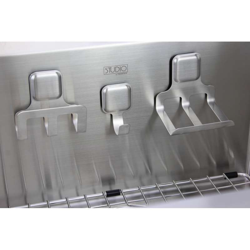 Keep your sink organized with magnetic accessories that adhere to the sidewalls of stainless steel sinks.