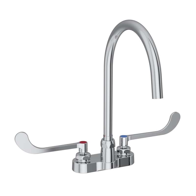 4" Centerset With Exposed Deck Laminar Flow Faucet With 8" Gooseneck Spout 6" Wristblade Handles Chrome, LK406LGN08T6 Chrome
