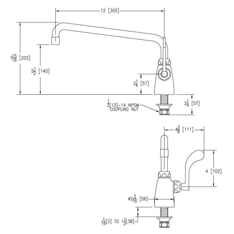Single Hole With Single Control Faucet With 12" Arc Tube Spout 4" Wristblade Handle Chrome, LK535AT12T4 Chrome