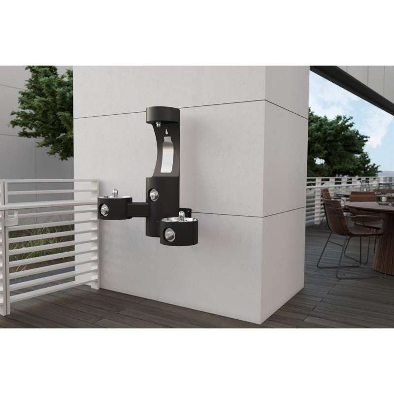 Outdoor Ezh2O Bottle Filling Station Wall Mount With Bi-Level Fountain Non-Filtered Non-Refrigerated Black, LK4409BFBLK Black
