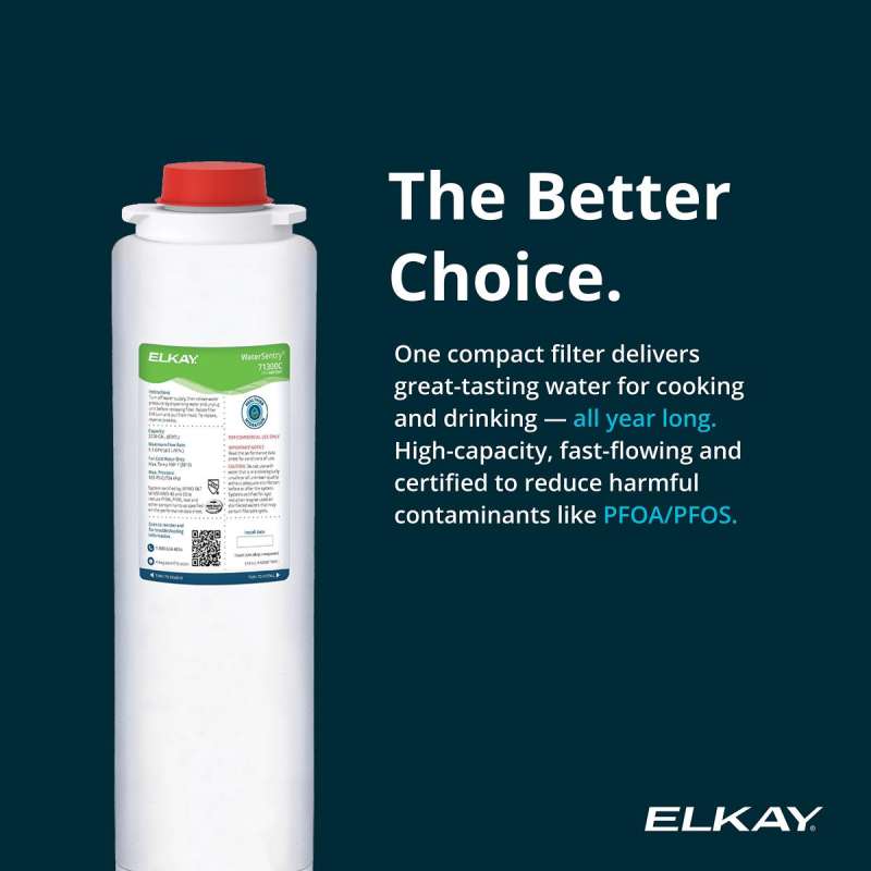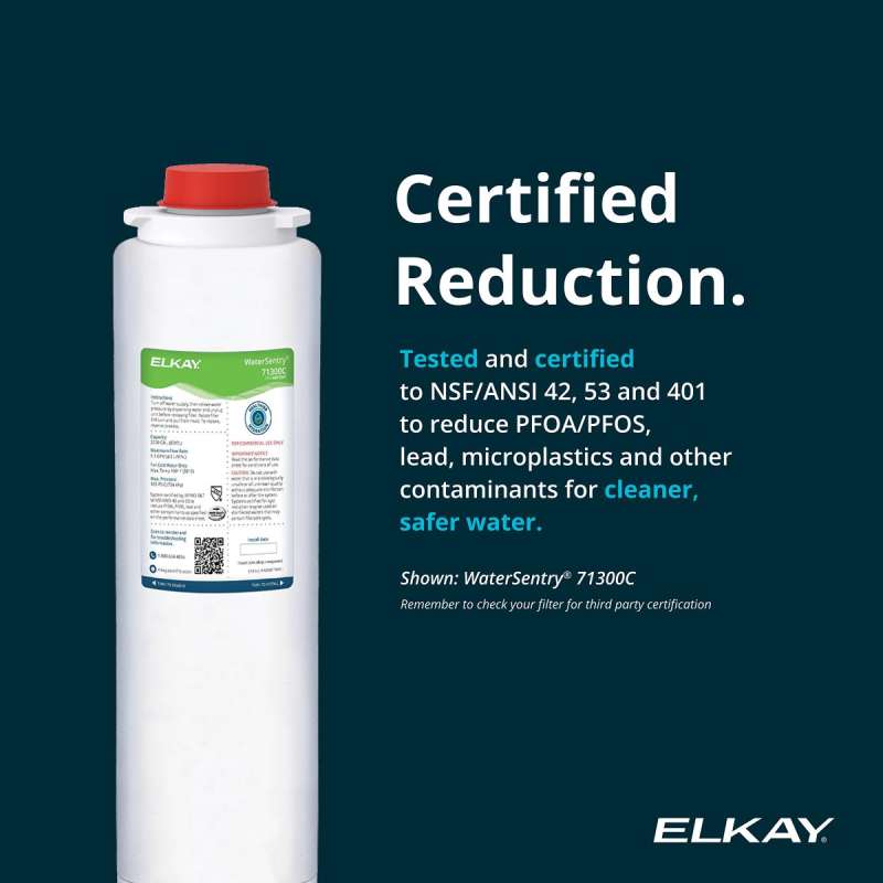 • Protect Your Family with Elkay's Certified Filter: The Liv EZ comes standard with the Elkay 71300C filter that is certified to NSF standards. Certification means your family is protected from lead, PFAS (forever chemicals), microplastics, and more.