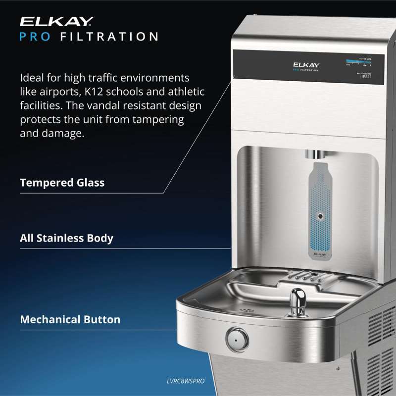 Elkay Pro Filtration Vandal-Resistant Connected Bottle Filling Station&Sgl Ada Cooler Refrig Ultra-Capacity Lead Rd Ss, LVRC8WSPRO Stainless Steel