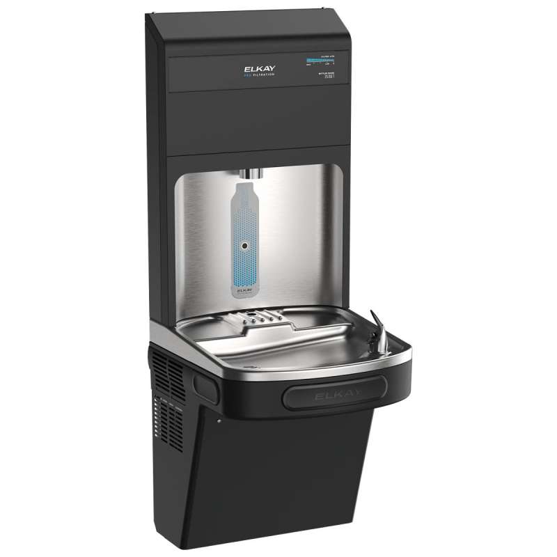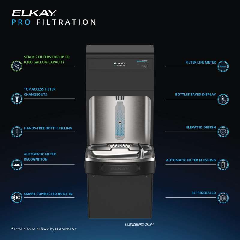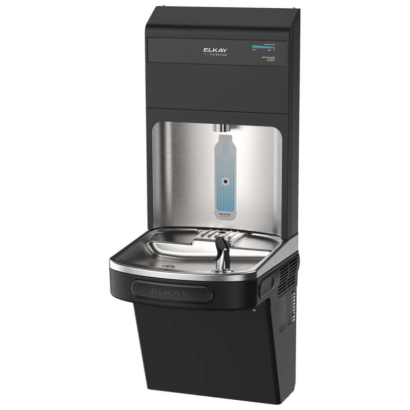 Elkay Pro Filtration Connected Bottle Filling Station & Single Ada Cooler Refrig Dbl Total Pfas* + Lead Reduction Bk, LZS8WSBPRO-2FLP4 Black Stainless