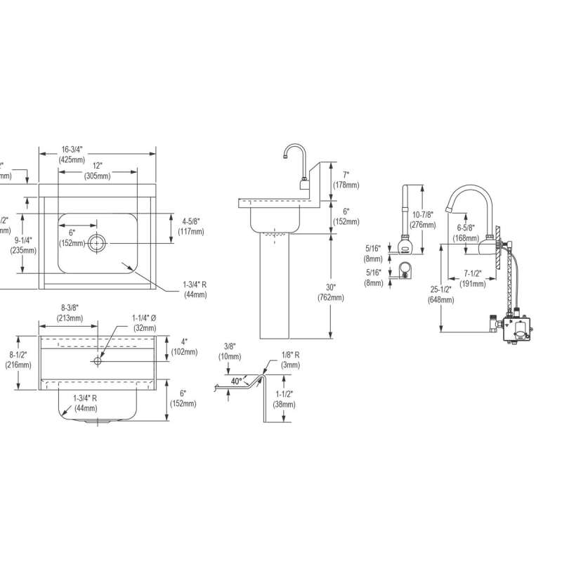 • KIT INCLUDES: CHSP1716 sink, LKB722C AC/battery-powered sensor faucet, LK723 thermostatic mixing valve, LK8 grid drain fitting, and LK500 P-trap