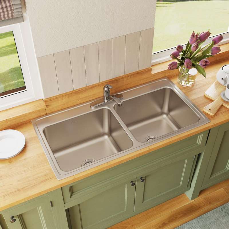 An Elkay Lustertone Classic stainless steel sink looks as great on day 3,000 as it does on day one. The rich, uniform grain is scratch resistant for heavy-duty use, whether it's a kitchen sink or a prep, bar, laundry or commercial sink. Light scratches, which occur with everyday use, naturally blend into the finish of this durable sink with time. Deeper scratches are repairable with an Elkay stainless steel restoration kit. Available in ADA depths.