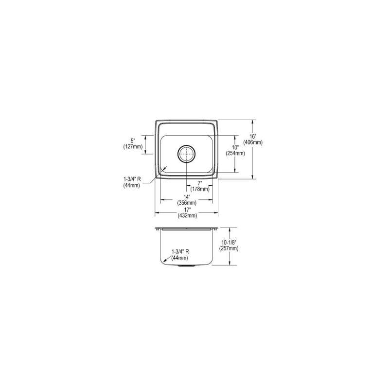 Drain Placement Bowl 1 Center Center