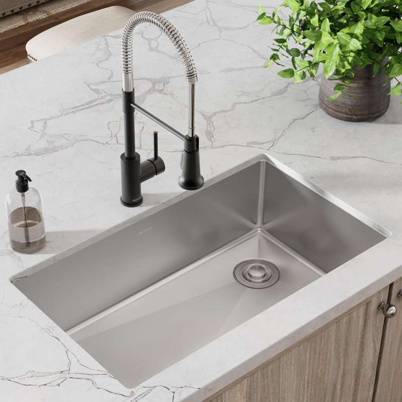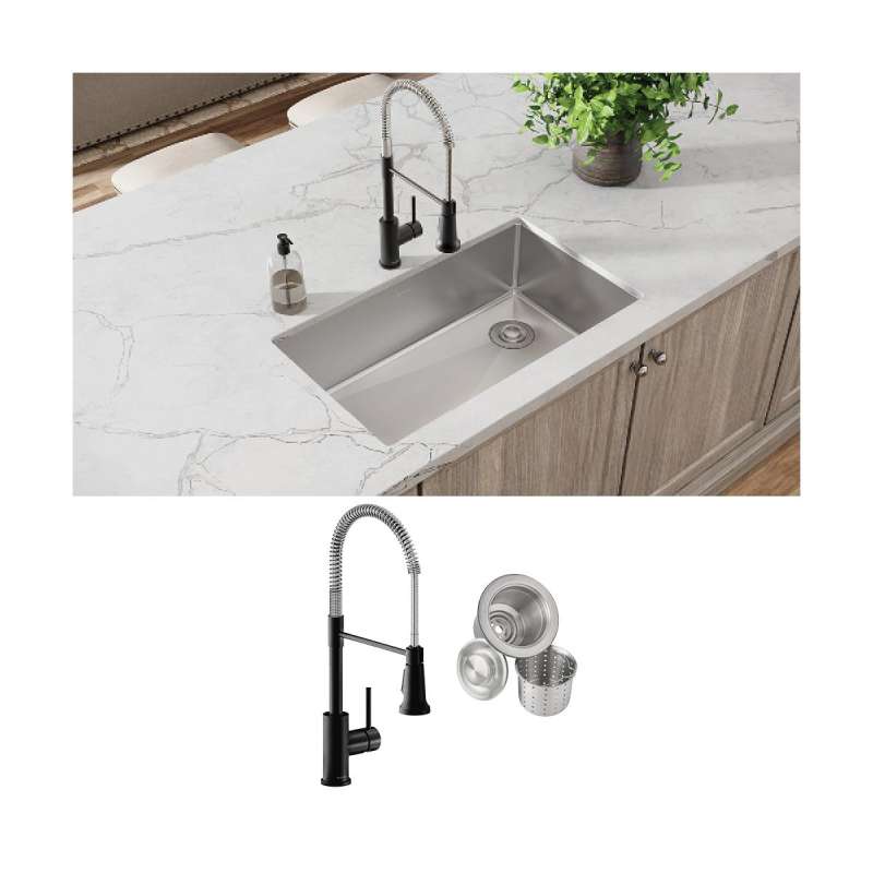 Crosstown 18 Gauge Stainless Steel 31-1/2" X 18-1/2" X 9" Single Bowl Undermount Sink & Faucet Kit With Drain, ECTRU30179RTFMC