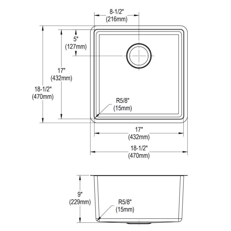 Stainless Steel 18-1/2" X 18-1/2" X 9" Undermount Single Bowl Radiant Satin 18 Gauge Sink 50 Pk, MFD103-50 Radiant Satin