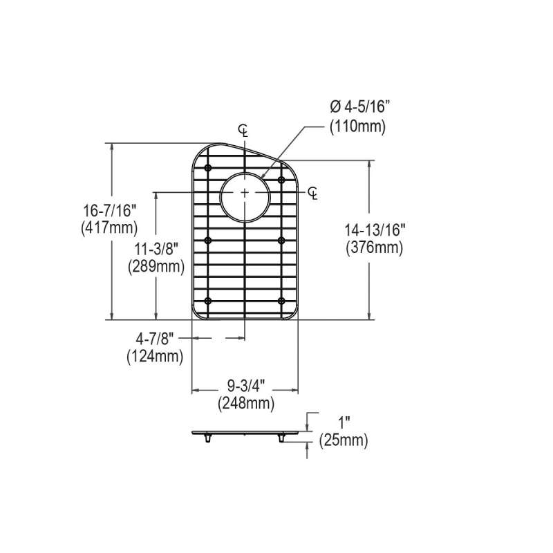 Dayton Stainless Steel 9-3/4" X 16-7/16" X 1" Bottom Grid, GOBG1118SS