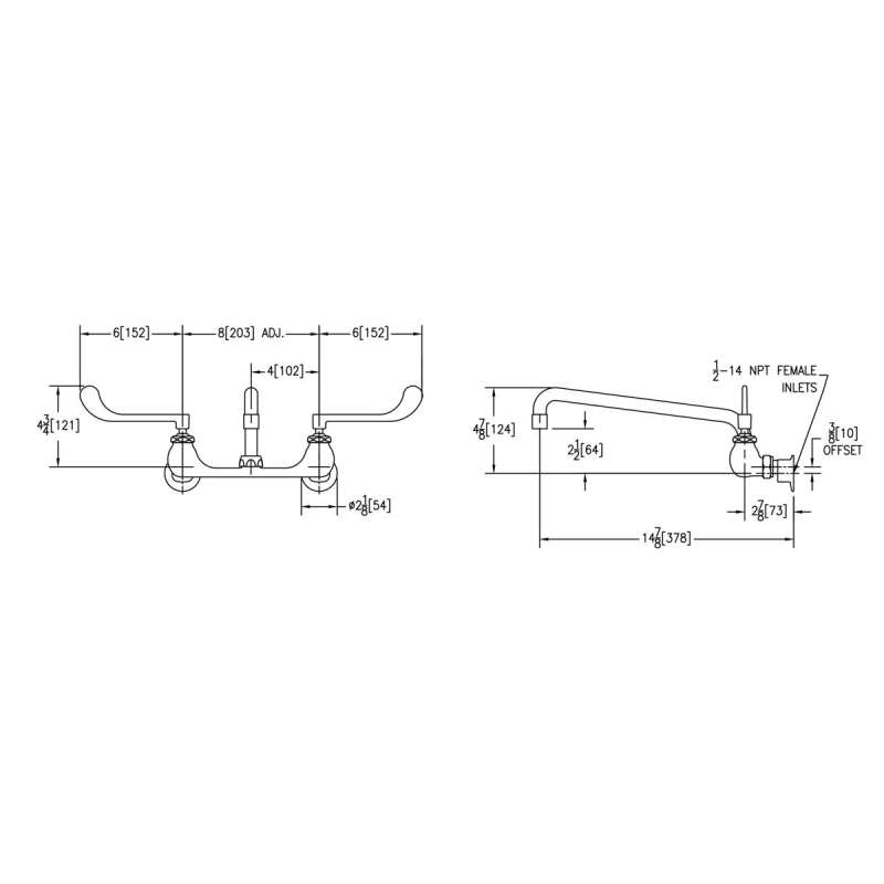 Foodservice 8" Centerset Wall Mount Faucet With 12" Arc Tube Spout 6" Wristblade Handles 1/2" Offset Inlets, LK940AT12T6H