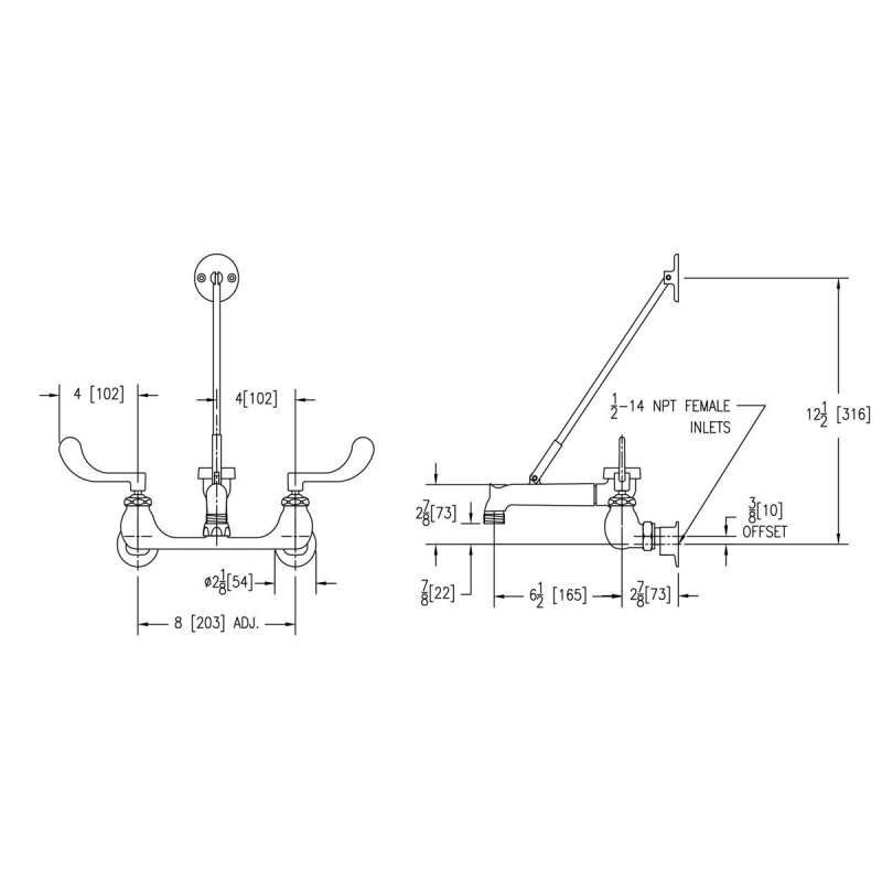 8" Centerset Wall Mount Faucet W/7" Bucket Hook Spt 4In Wristblade Handles 1/2" Offset Inlet Polished Chrome, LK940BP07T4H