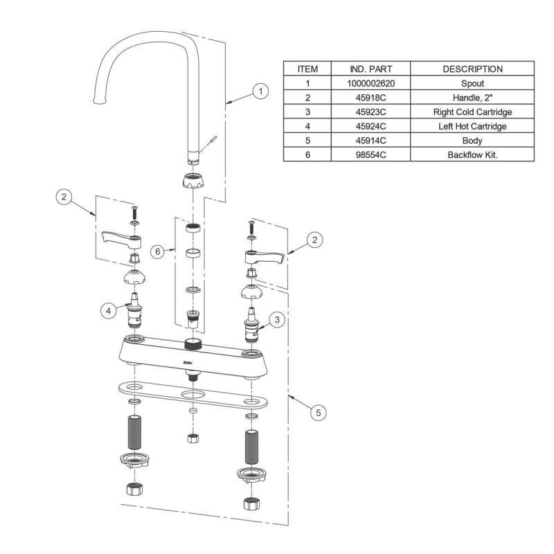 • SPOUT SWING RESTRICTOR PIN: Special pin locks faucet into stationary position for required applications