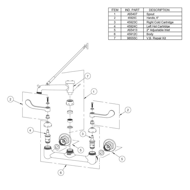 • SPOUT SWING RESTRICTOR PIN: Special pin locks faucet into stationary position for required applications