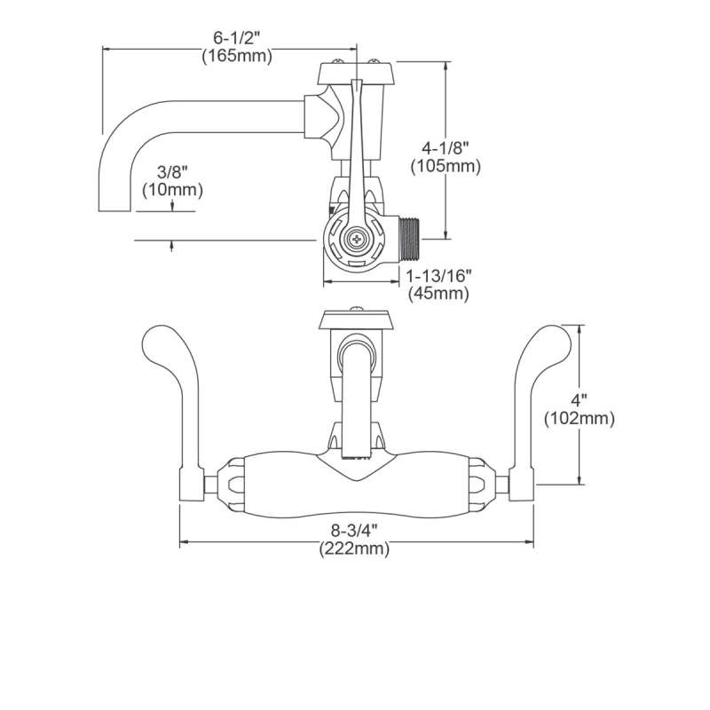 Foodservice 3-8" Adjustable Centers Wall Mount Faucet W/7" Vented Spout 4" Wristblade Handles 2" Inlet, LK945VS07T4T