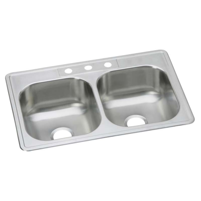 Dayton Stainless Steel 33" X 22" X 8-1/16" 3-Hole Equal Double Bowl Drop-In Sink, DSE233223 Elite Satin
