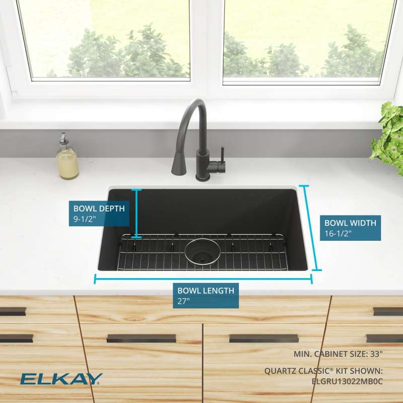Quartz Classic 29-1/2" X 18-3/4" X 9-1/2", Single Bowl Undermount Sink Kit, Matte Black, ELGRU13022MB0C Matte Black