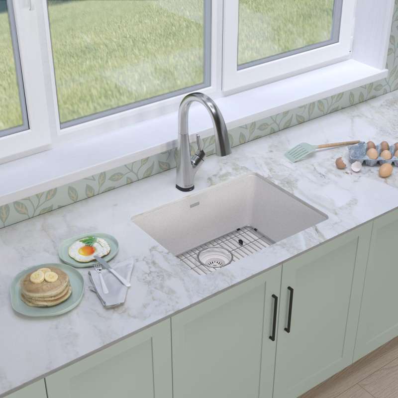 Quartz Classic 24-5/8" X 18-1/2" X 9-1/2" Single Bowl Undermount Sink Kit With Filtered Faucet White, ELGU2522WH0FLC White