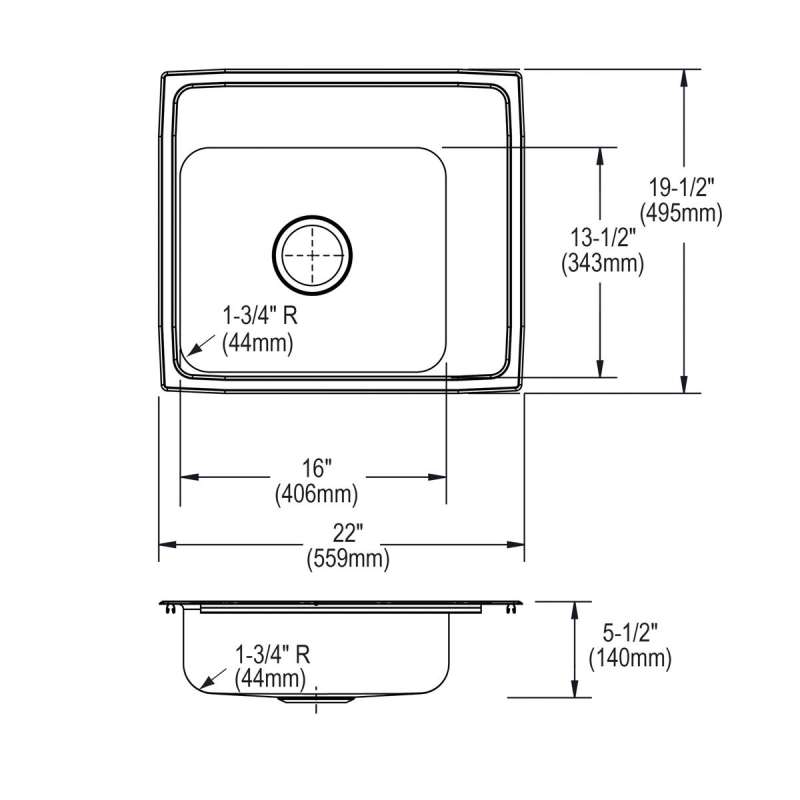 Lustertone Classic Stainless Steel 22" X 19-1/2" X 5-1/2" Single Bowl Drop-In Classroom Ada Sink, DRKADQ222055R2 Lustrous Satin