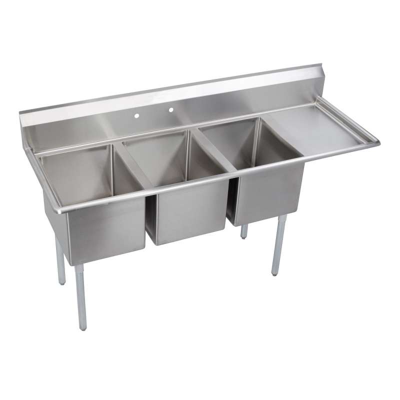 Dependabilt Stainless Steel 72-1/2" X 25-13/16" X 43-3/4" 18 Gauge Three Compartment Sink W/ 18" Right Drainboard And Stainless Steel Legs, E3C16X20-R-18X