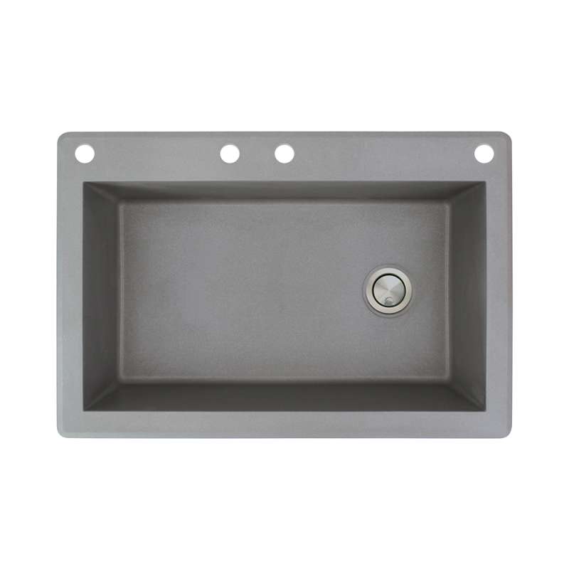 • 33-in X 22-in X 9.5-in silQ Granite Kitchen Sink with Super Single Offset Bowl, Drop-in Installation, with 4 CABE Faucet Holes, In Grey Grey