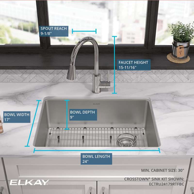 The Elkay Crosstown collection offers a fresh take on the classic stainless steel sink, combining beauty, function and contemporary design. Tight corners and a flat bottom provide more space inside the sink bowl for stacking and cleaning dishes. The striking geometric shape makes a statement in any home.