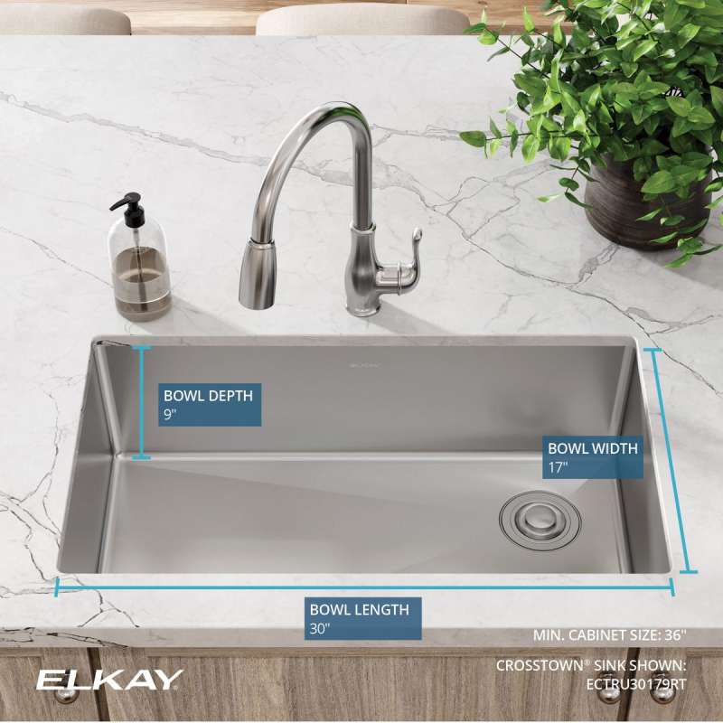 The Elkay Crosstown collection offers a fresh take on the classic stainless steel sink, combining beauty, function and contemporary design. Tight corners and a flat bottom provide more space inside the sink bowl for stacking and cleaning dishes. The striking geometric shape makes a statement in any home.
