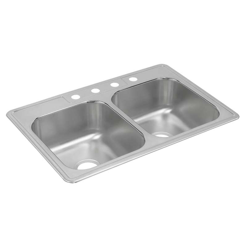 Dayton Stainless Steel 33" X 22" X 8-3/16" 2-Hole Equal Double Bowl Drop-In Sink, DXR33222 Satin