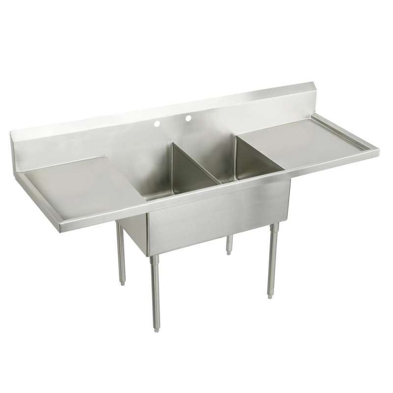 Sturdibilt Stainless Steel 102" X 27-1/2" X 14" Floor Mount Double Compartment Scullery Sink With Drainboard, SS8254LR4 Buffed Satin