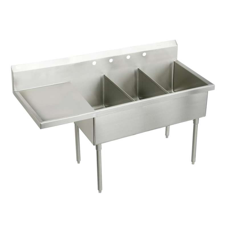 Sturdibilt Stainless Steel 97-1/2" X 27-1/2" X 14" Floor Mount Triple Compartment Scullery Sink W/ Drainboard, SS8372L4 Buffed Satin