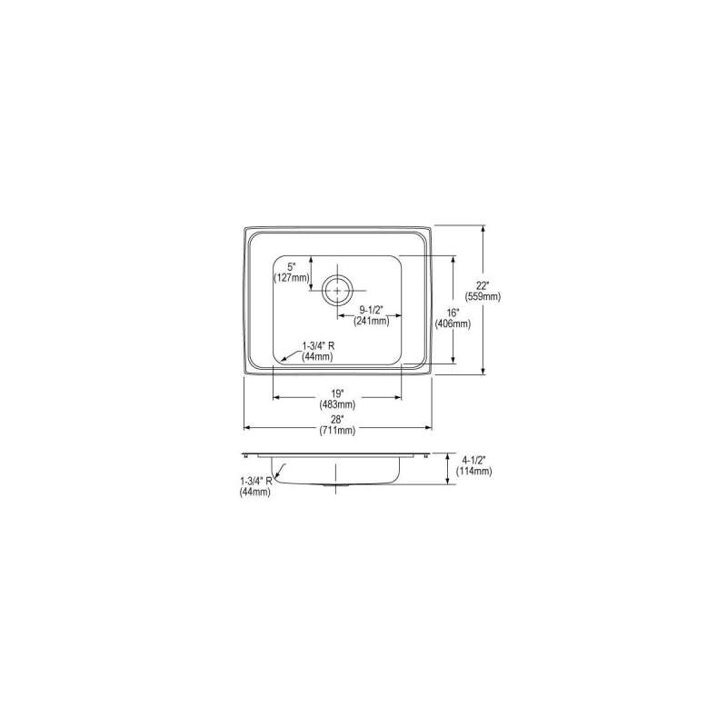 Lustertone Classic Stainless Steel 28" X 22" X 4-1/2", Single Bowl Drop-In Classroom Ada Sink, DRKAD2822450 Lustrous Satin