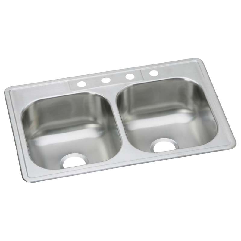 Dayton Stainless Steel 33" X 21-1/4" X 8-1/16", 0-Hole Equal Double Bowl Drop-In Sink, DSE233210 Elite Satin