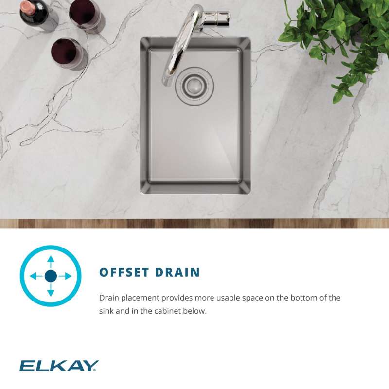 • OFFSET DRAIN: Drain placement provides more usable space on the bottom of the sink and in the cabinet below