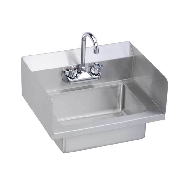 Stainless Steel 18" X 14-1/2" X 11" 18 Gauge Hand Sink With Dual Side Splashes And Faucet, EHS-18-SSX #4 Finish