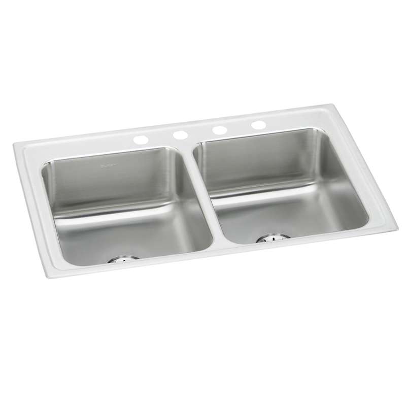 Lustertone Classic Stainless Steel 33" X 21-1/4" X 7-7/8", 0-Hole Equal Double Bowl Drop-In Sink W/ Perfect Drain(R), LR3321PD0 Lustrous Satin