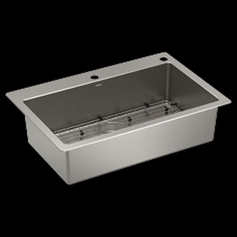 High-quality construction and extensive selection come together with the 18-gauge, medium-duty stainless steel sinks and they serve as a solid base for all cooking needs. The wear-resistant uniform brushed stainless steel looks great and is easy to clean leaving behind a sleek and shiny finish. The sinks also include Moen's sound-deadening system which offers exceptional noise reduction and quiet dependability.