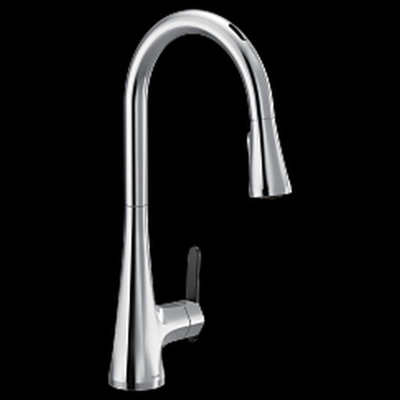 The Moen Smart Faucet with Motion Control makes life easier—and completely touch free—in the kitchen. The advanced sensor technology allows touchless operation of both the temperature and water flow by using simple hand motions, while the voice-activated and app-based features give you additional control and personalization.