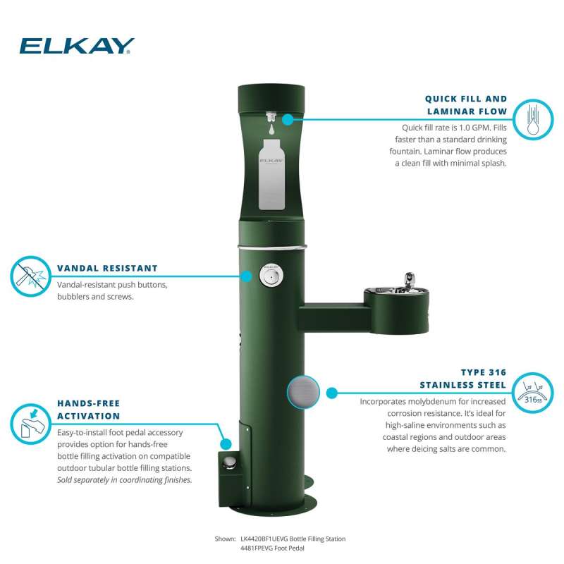 • Convenient foot activation for healthier, hands-free bottle filling