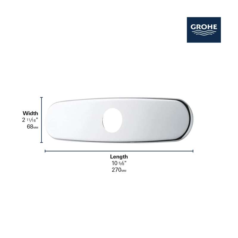 The Escutcheon from GROHE is for use with any single-handle kitchen, bar, bathroom or bidet faucet to cover unused mounting holes. This genuine GROHE part is made of brass for strength and durability.