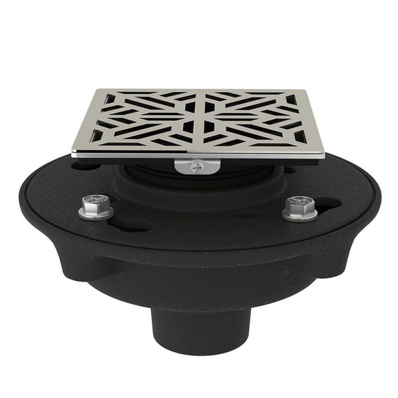 Cast Iron 2-in No Hub Drain Kit with 3144 Mosaic Decorative Cover in Polished Nickel