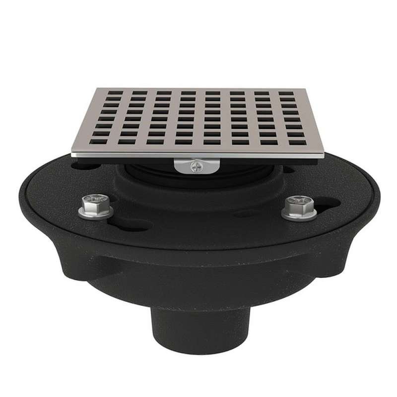 Cast Iron 2-in No Hub Drain Kit with 3143 Matrix Decorative Cover in Satin Nickel Satin Nickel