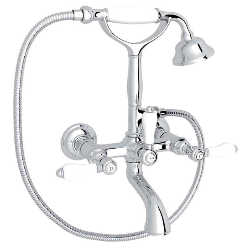 A1401LPAPC Exposed Wall Mount Tub Filler with Handshower and White Porcelain Lever Handle, Polished Chrome Polished Chrome